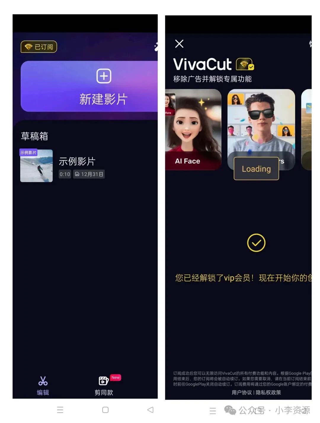 视频剪辑神器,无限畅玩! 2024-12-31 安卓软件 20 短视频剪辑工具一直备受粉丝朋友青睐! 今日为您带来这款非凡神器,功能全无限制,尽享所有功能。内置了丰富的模板素材,可任您自由运用、个性化编辑以及导出。体验感极佳,建议各位都来一试,可以成为您日常视频编辑得力助手。切勿错过,赶紧行动起来吧! VivaCut视频编辑(适用平台:安卓) 安装后界面界面如下,无需登录即可尊享会员待遇。VIP订阅特权一直有效,尽享所有功能。无论是日常所需的视频编辑还是模板音乐等,一应俱全,满足您的各种日常需求。 在此软件里,可随心所欲地进行视频编辑,功能超乎想象,与您惯用的一些平台视频编辑器操作体验相近,所以不会存在很难上手操作。在此,可以运用很多在线的特效转场等功能和内容,畅享编辑乐趣。 最后,也是最冠心的就是软件内含丰富模板,可以任您随心挑选。虽然类别相对有限,但可通过搜索功能寻找心仪模板。一键应用,让您的视频更具视觉冲击力。此外最重要的一点,软件支持最高4K画质导出,亦可设为动态壁纸,尽享便捷。 所以这款软件,对于目前的您来说,也许是一个很不错的选择,喜欢视频编辑的朋友可以好好去运用,最主要的是免费而且又好用。 获取资源方式: 公众号对话框回复1769获取资 如需获取网盘链接 登录 后可见! 原文链接:https://www.swofai.cn/android/2171.html,转载请注明出处。 0