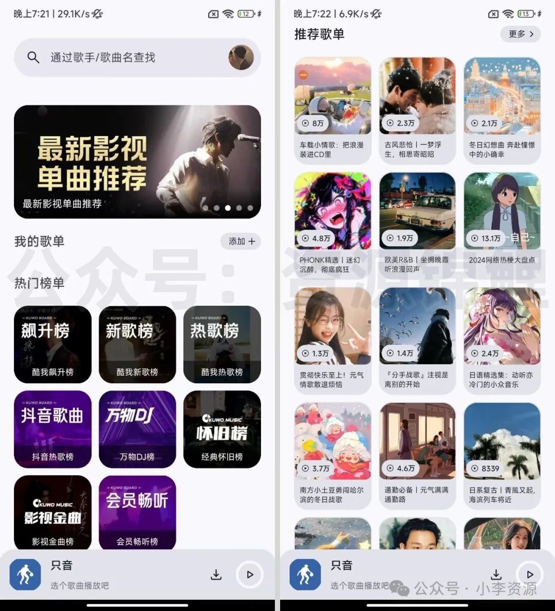 软件无需解锁,免费,就是这样的个性。内置丰富的资源,包括热门、新歌、抖音等等歌单,无论版权有否,一律无视。