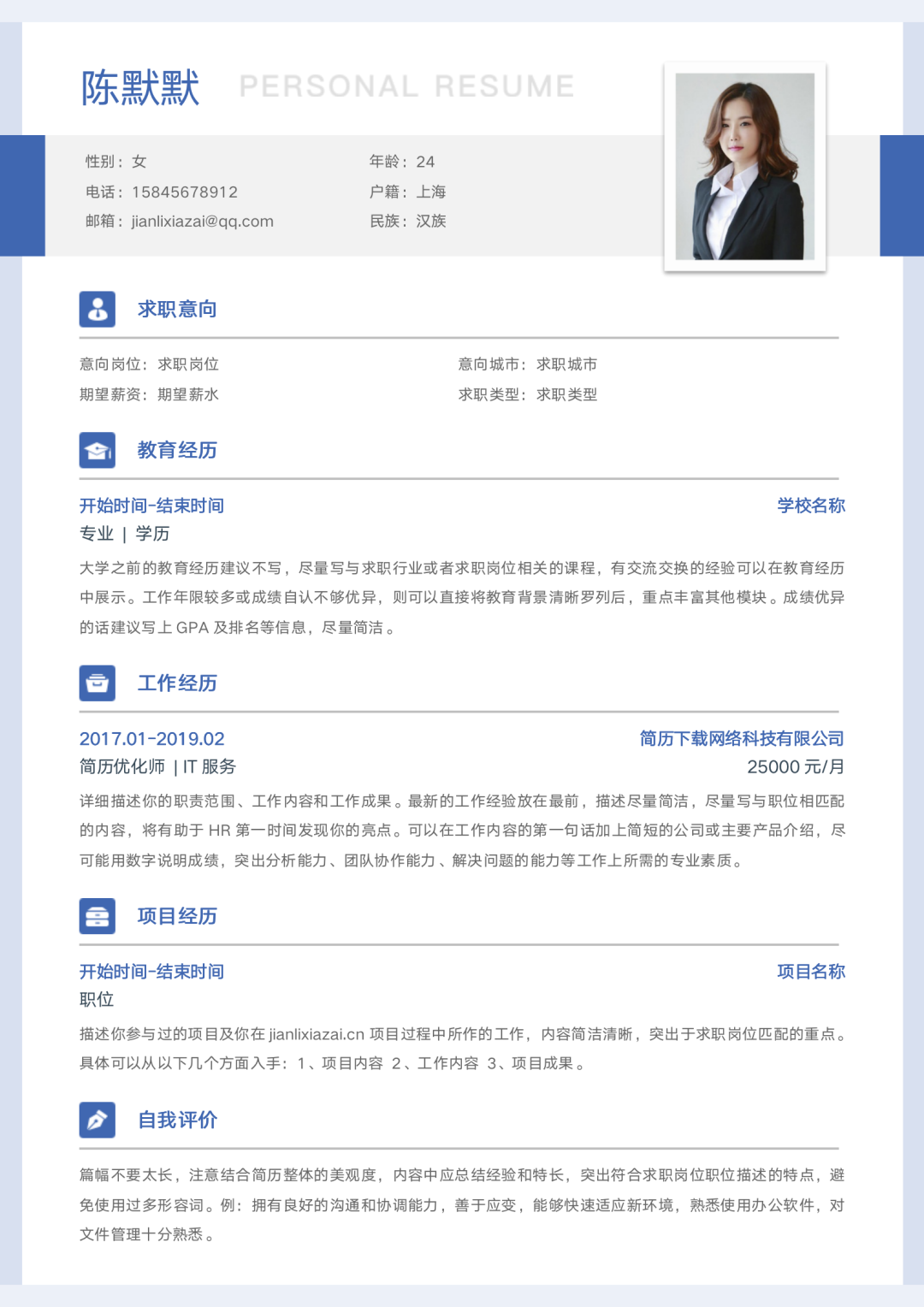 可做程序员简历、产品经理简历、应届生简历、销售简历、设计师简历、数据分析师简历……